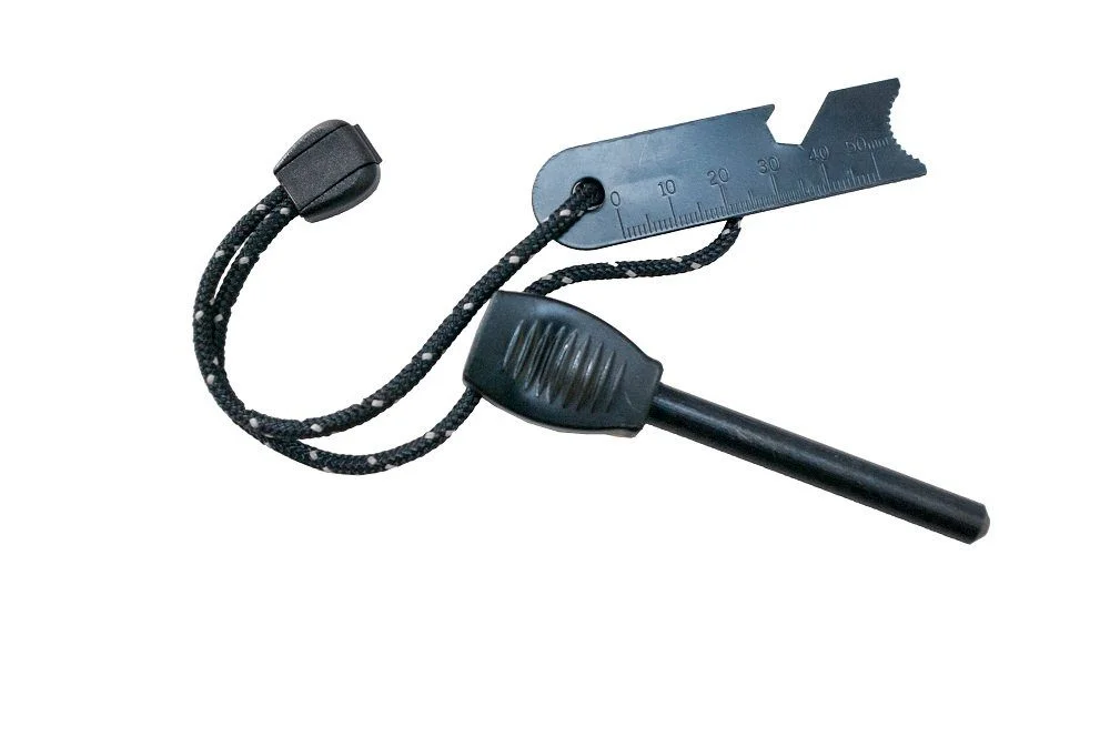 Der praktische Zündstahl ist mit einem Paracord am Griff befestigt, sodass er leicht zu handhaben und jederzeit griffbereit ist.