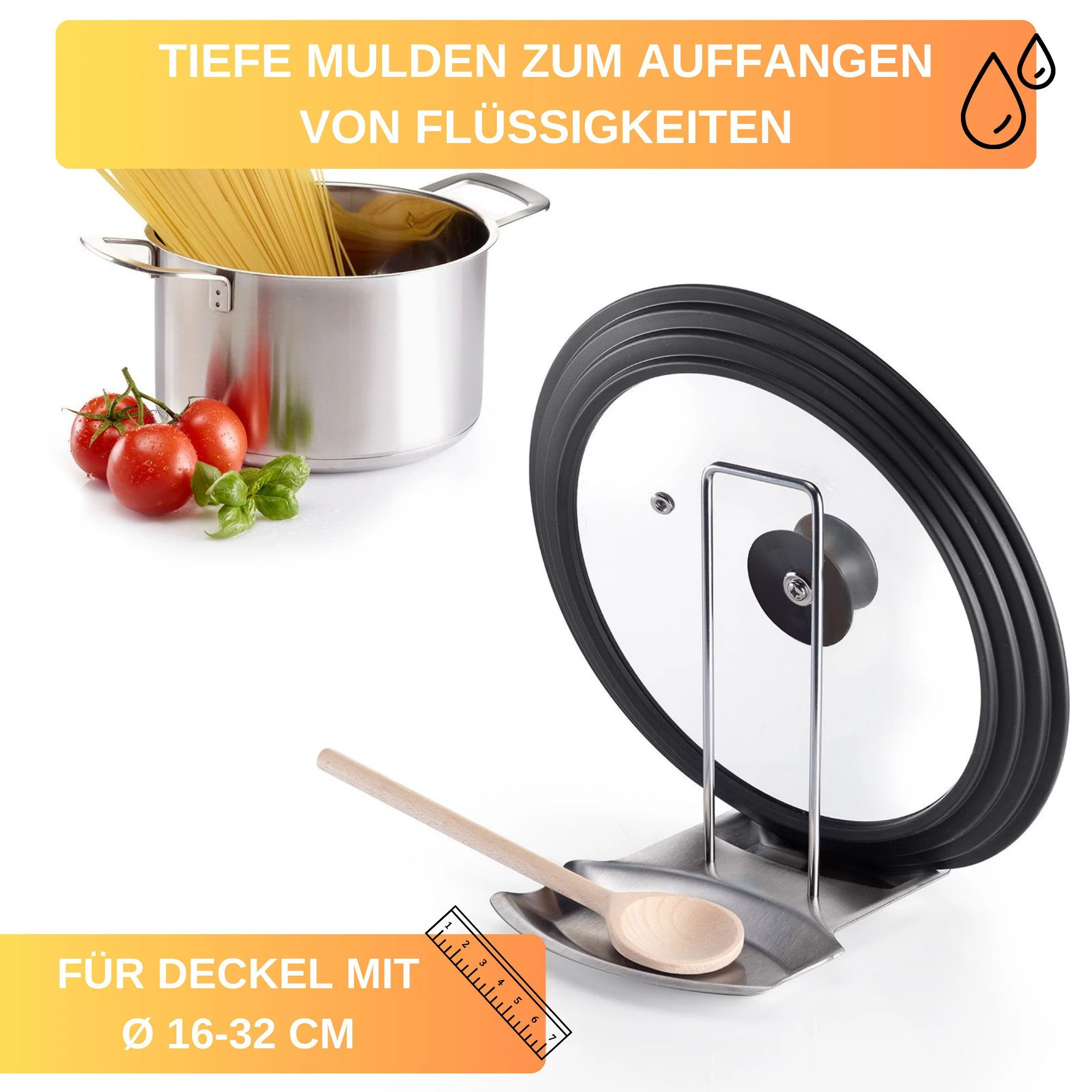 Tiefe Mulden • Passend für Deckel Ø 16–32 cm • Platzsparend & pflegeleicht