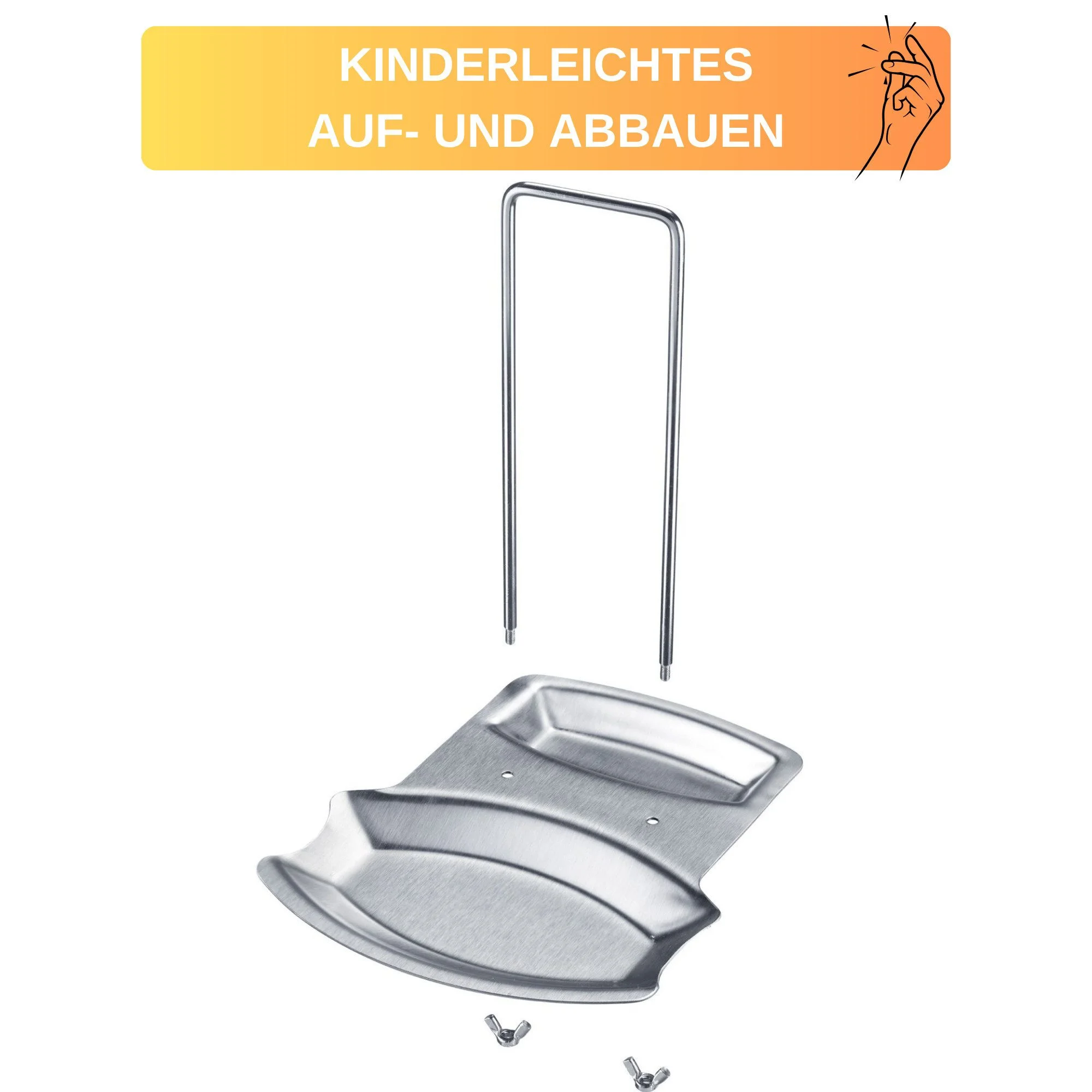 Aus rostfreiem Edelstahl gefertigt, ist die Ablage langlebig, pflegeleicht und spülmaschinengeeignet. Sie lässt sich einfach auf- und abbauen und kann platzsparend in der Küchenschublade verstaut werden.