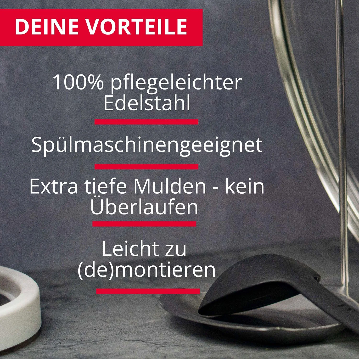 Highlights: Praktische Ablage für Löffel und Deckel, robuste Edelstahlkonstruktion, tiefen Mulden für saubere Arbeitsflächen, einfach zu handhaben und zu reinigen.