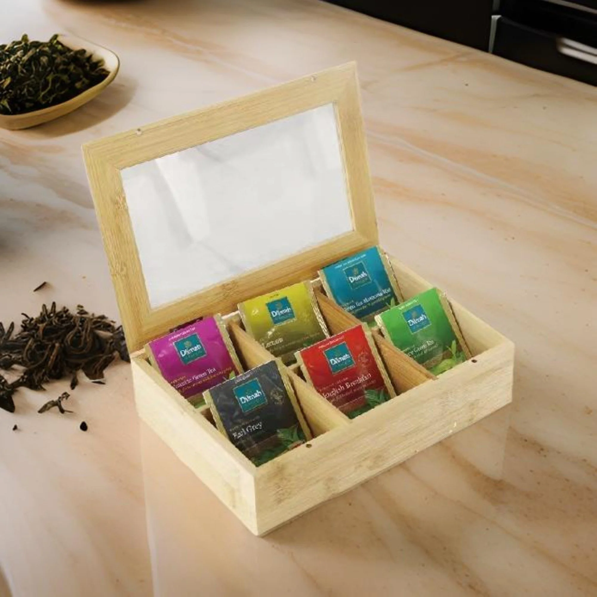 Küchenorganizer-Set Bambus Teebox – Cheffinger, 6 Fächer