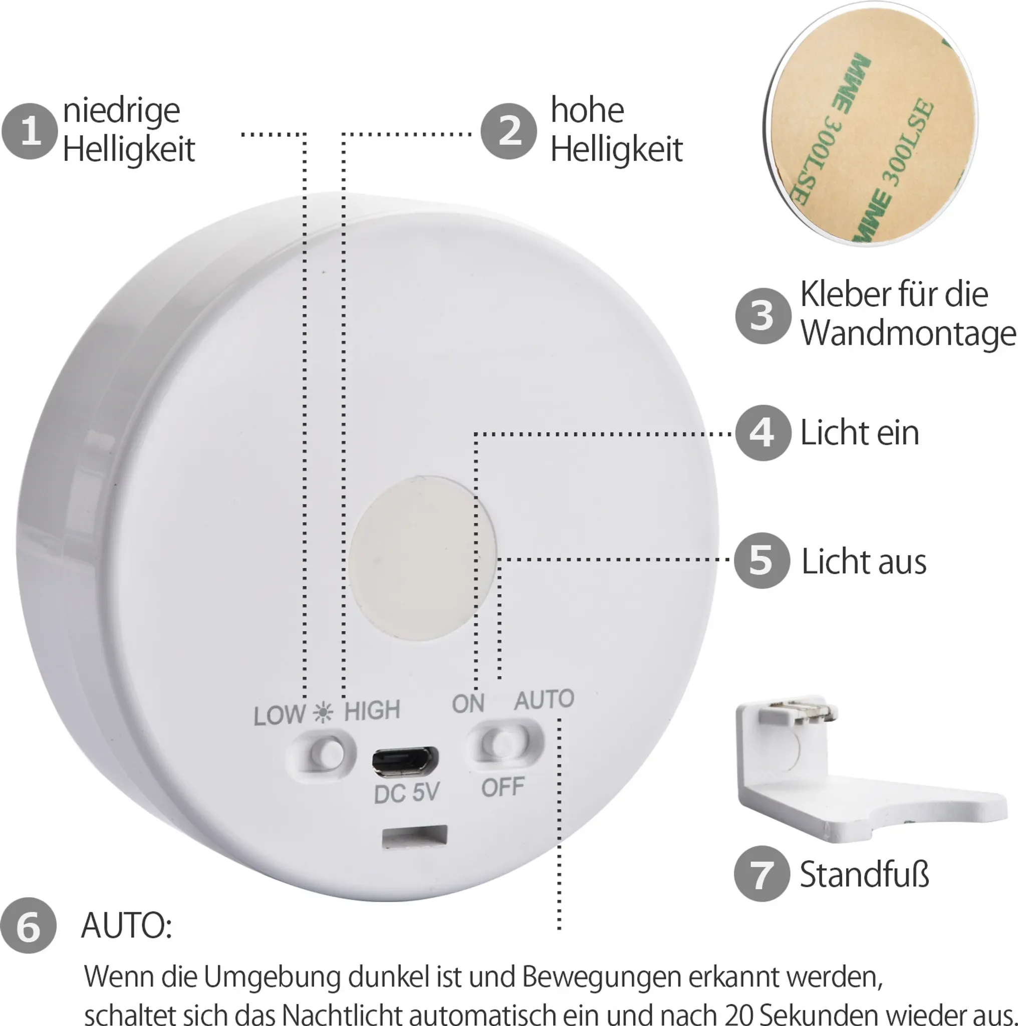 Highlights: Automatische Ein- und Abschaltung, kabellose Nutzung, kinderfreundliches Design, energiesparende LED-Technologie, flexibel platzierbar.