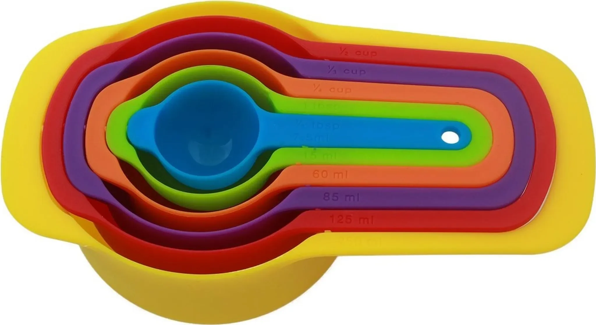 | Größen | 7,5 ml (1/2 TL), 15 ml (1 TL), 60 ml (1/4 Tasse), 85 ml (1/3 Tasse), 125 ml (1/2 Tasse), 250 ml (1 Tasse) |