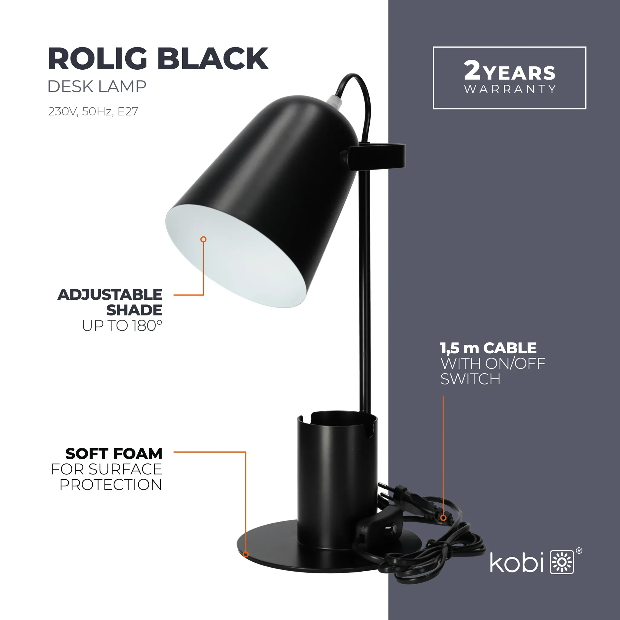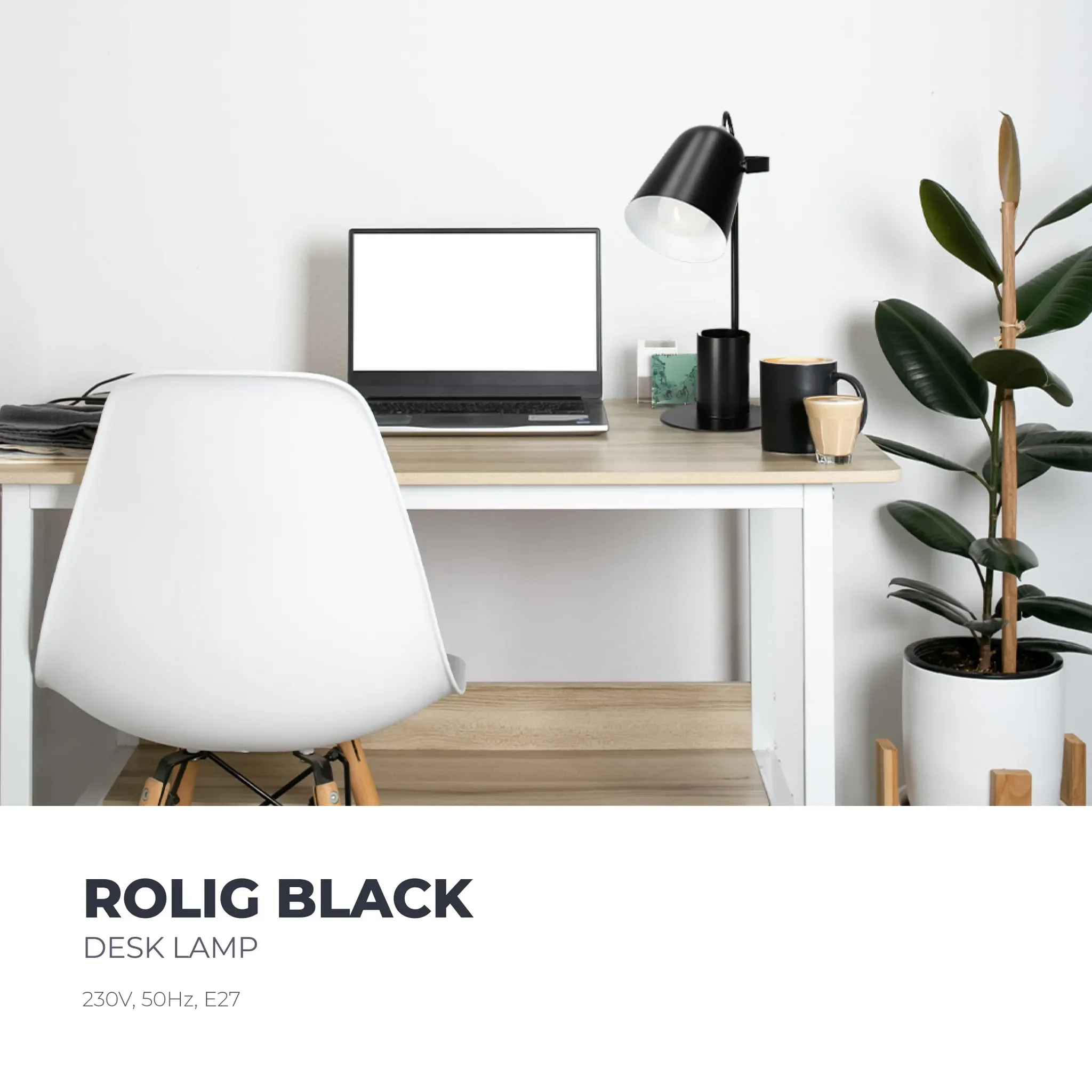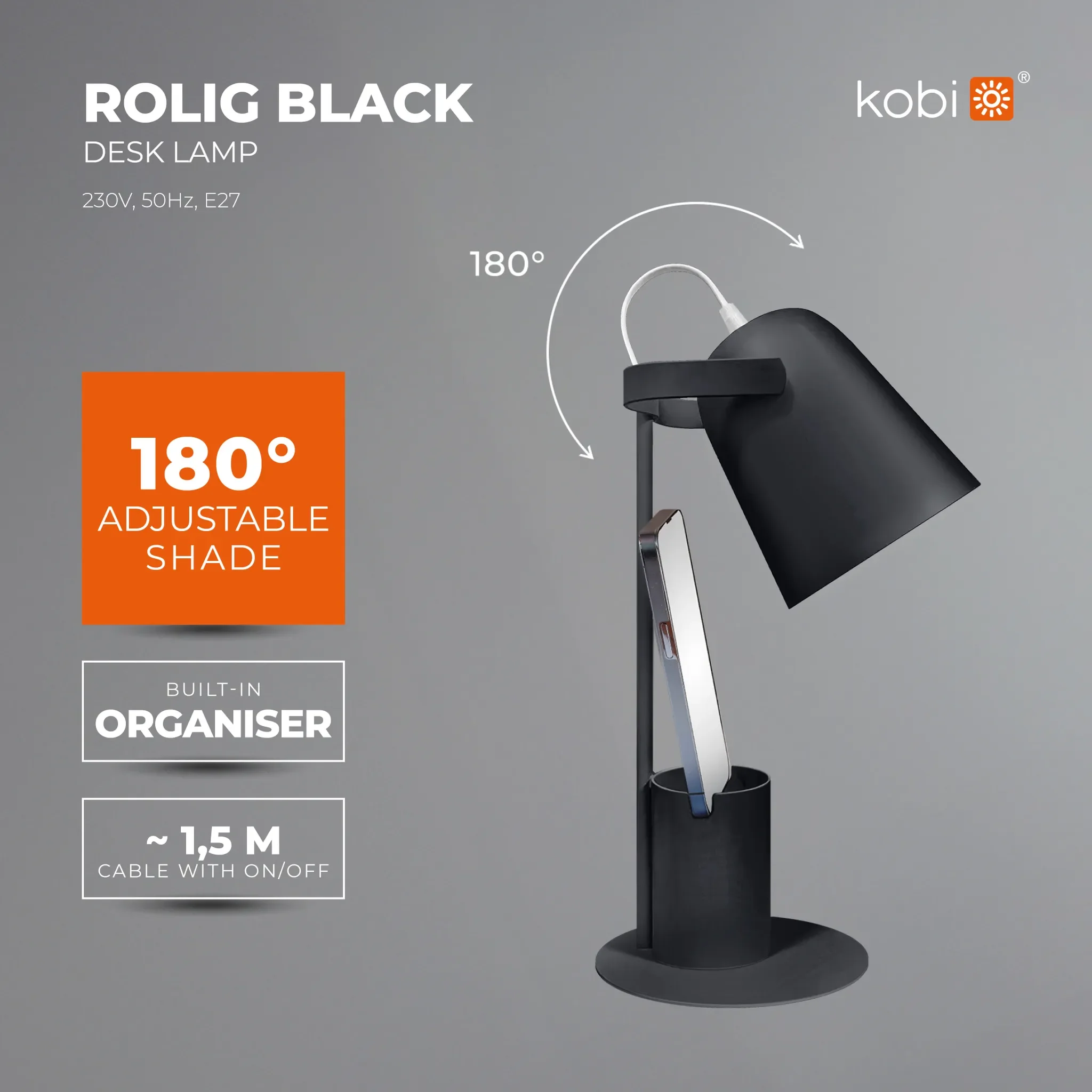 Produktinformationen "Tischleuchte ROLIG – Schwarz, mit beweglichem Schirm & Stifthalter"