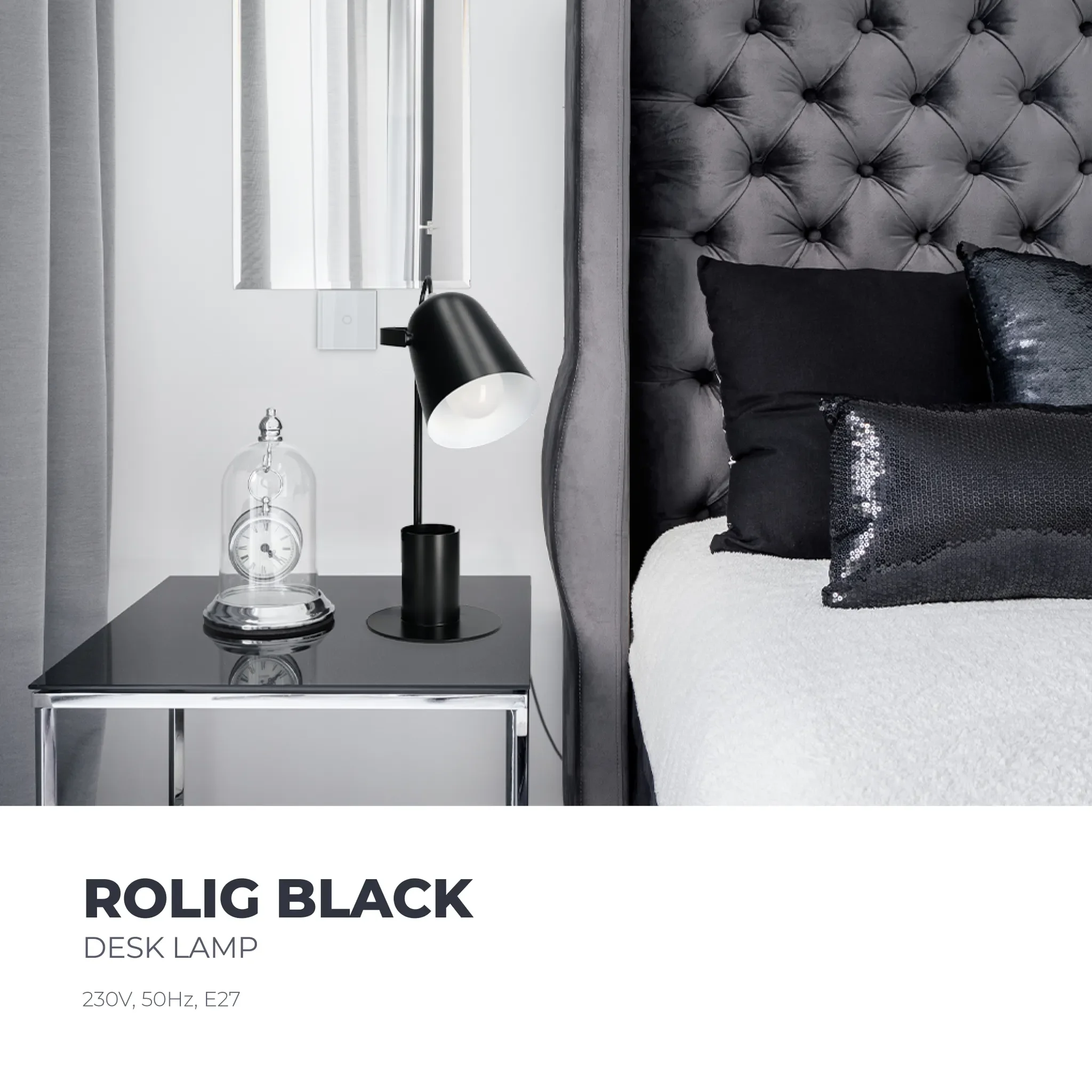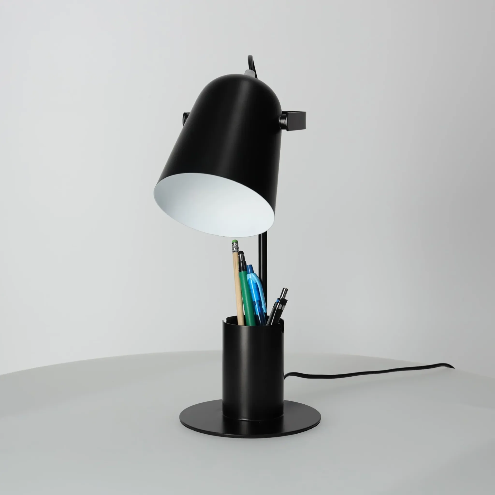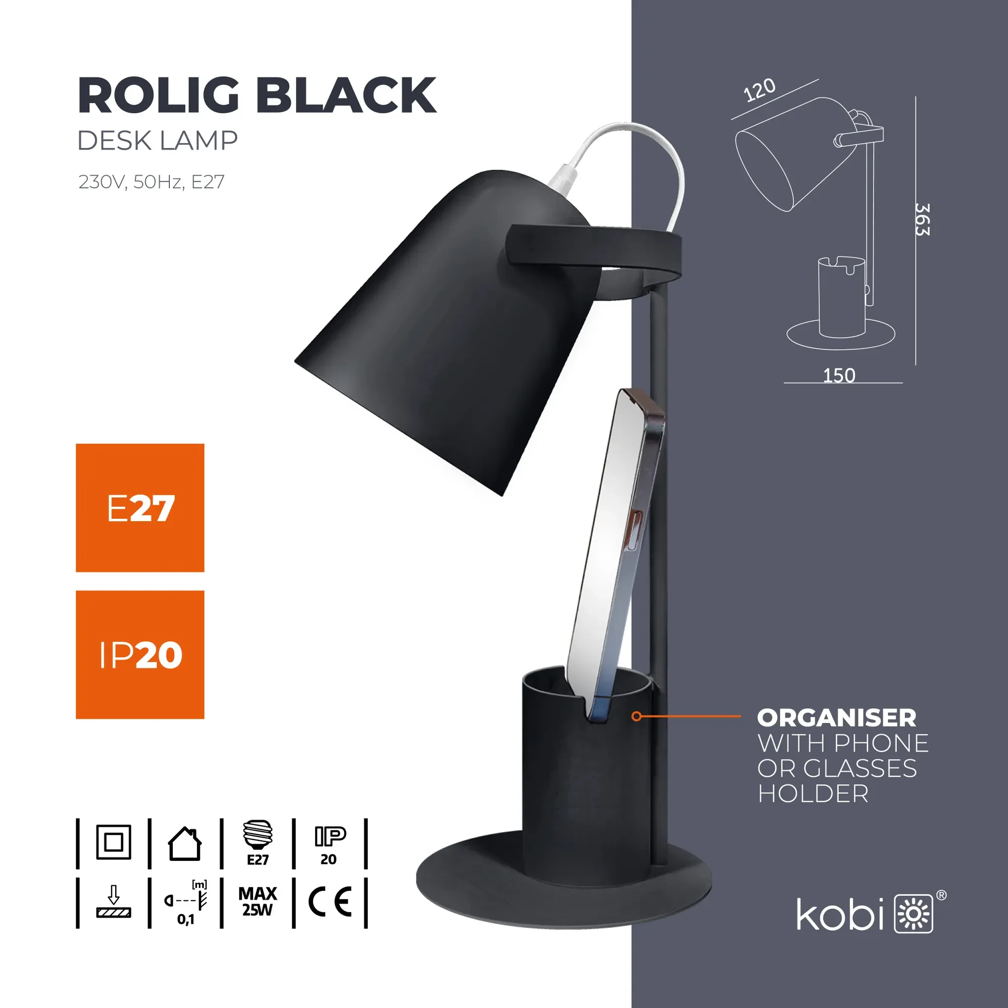 Produktinformationen "Tischleuchte ROLIG – Schwarz, mit beweglichem Schirm & Stifthalter"