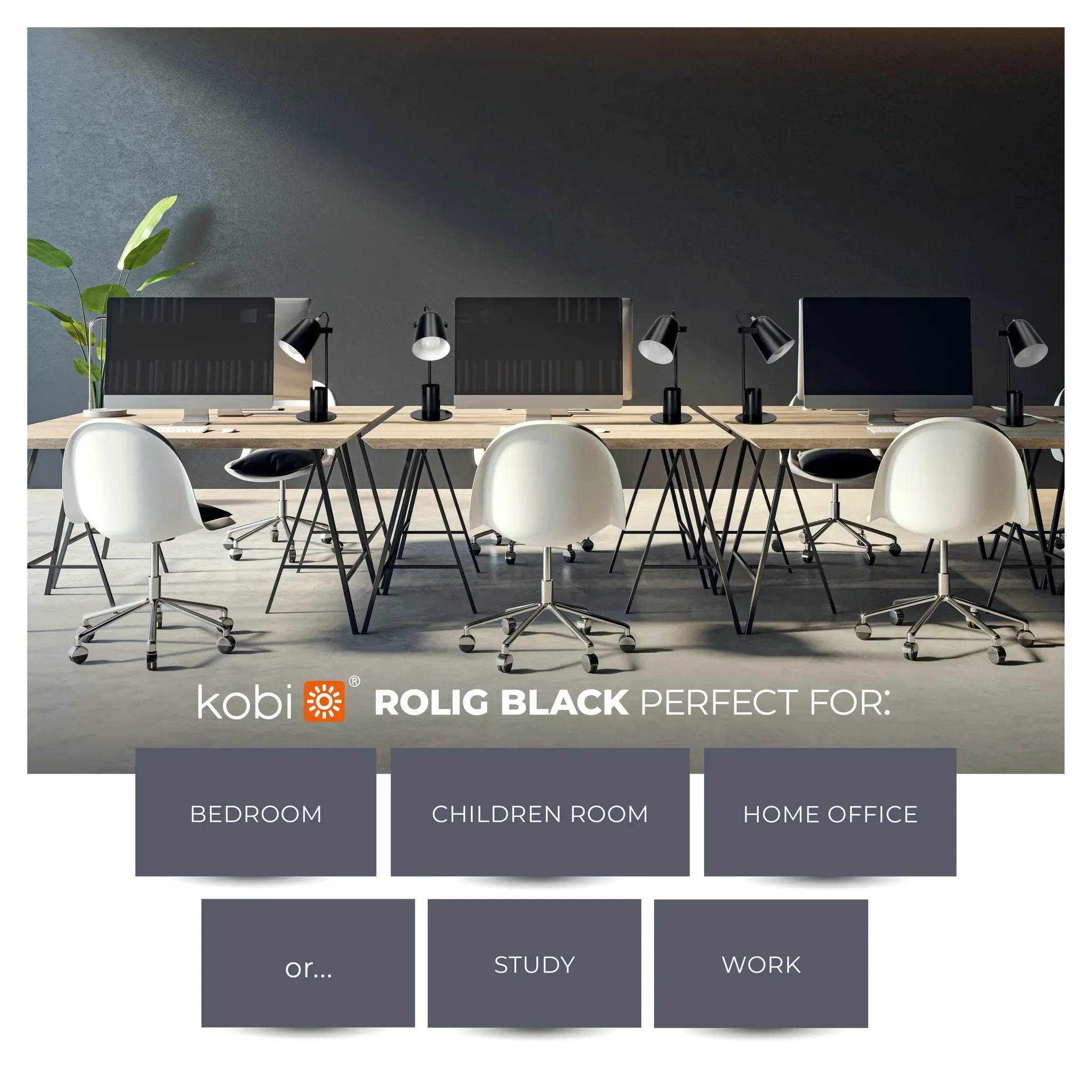 Die schwarze Tischleuchte ROLIG wurde für konzentriertes Arbeiten und Lernen entwickelt. Ihr zeitloses, universelles Design passt sowohl ins Homeoffice als auch ins Kinder- oder Arbeitszimmer. Der integrierte Stiftekorb sorgt für Ordnung auf dem Schreibtisch und hält wichtige Utensilien griffbereit.