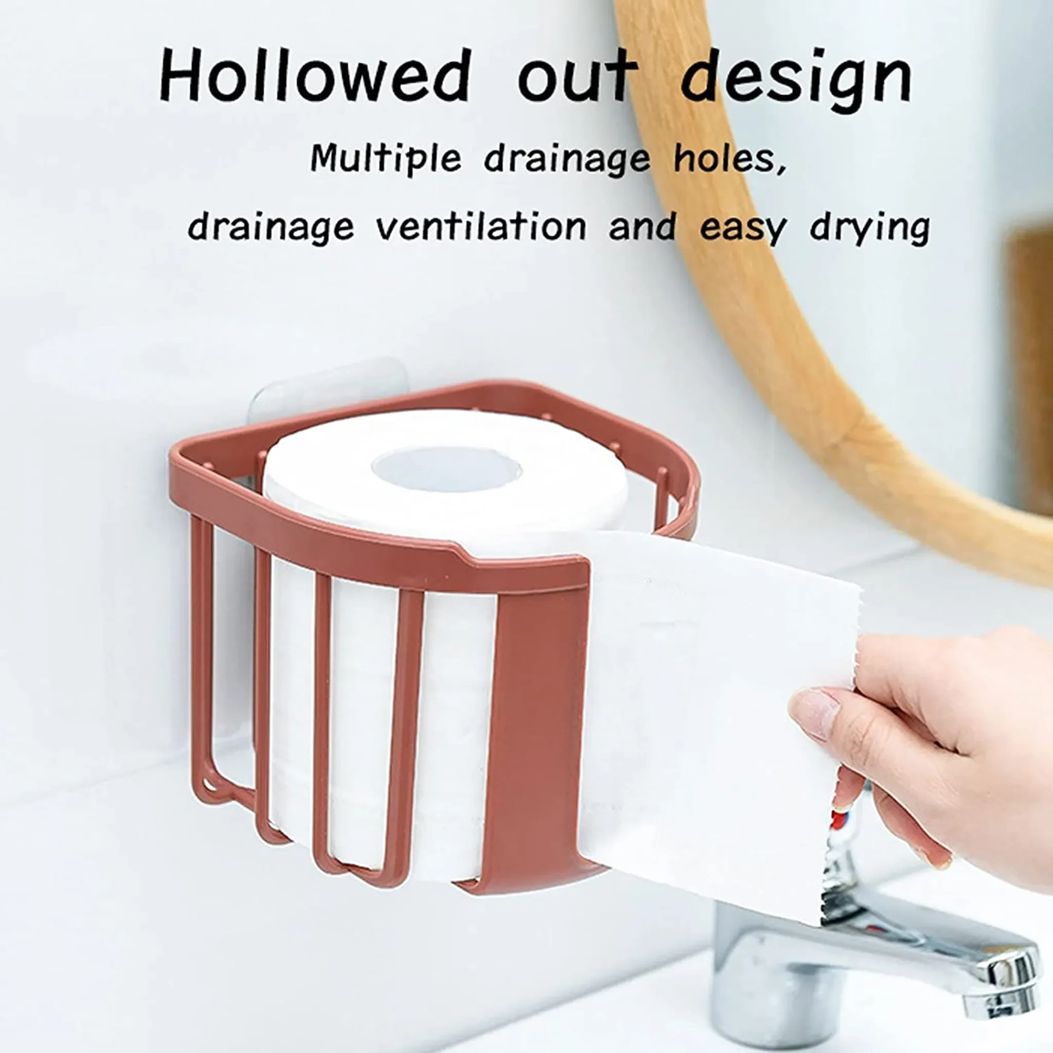 Das offene, hohle Design unterstützt eine gute Luftzirkulation und hilft, das Toilettenpapier trocken zu halten. Dank der selbstklebenden Montage ist keine Bohrung erforderlich – ideal für Mietwohnungen sowie für den Einsatz in Hotels, Restaurants oder Gäste-WCs.