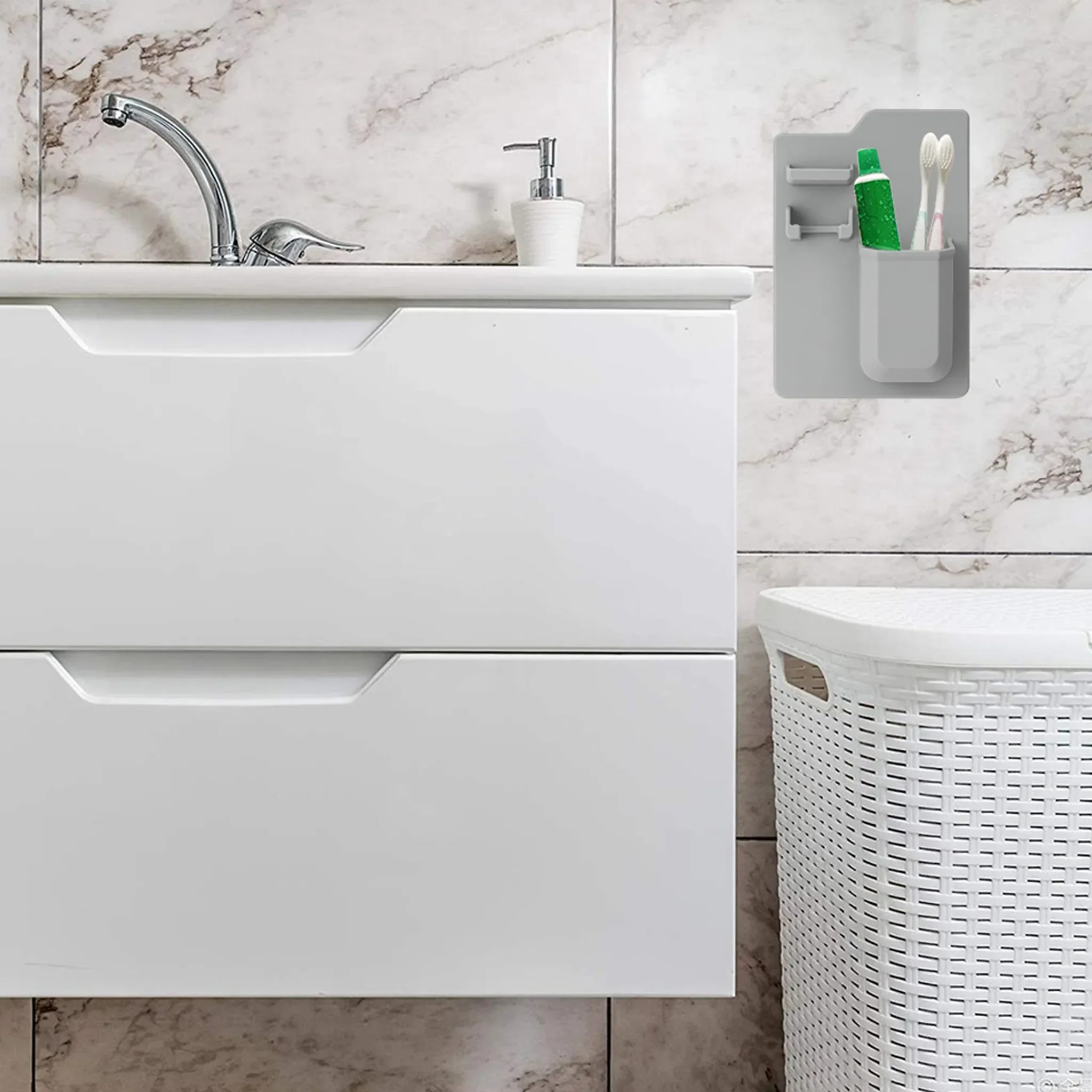 Zahnbürstenhalter & Zahnputzbecher – Silikon, Grau, Ohne Bohren