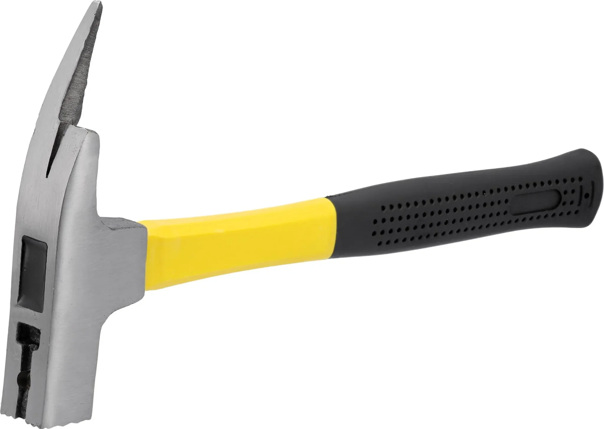 Der Hammerkopf aus Stahl ist fest mit einem stabilen Fiberglasstiel verbunden. Der ergonomische Kunststoffgriff sorgt für sicheren Halt und angenehme Handhabung. Der gebogene Nagelzieher mit verlängertem Löffel erleichtert das Herausziehen von Nägeln und das Arbeiten an Balken und Konstruktionen.